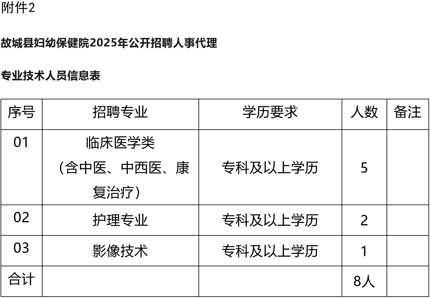 附:《故城县中医医院、故城县妇幼保健院2025年公开招聘人事代理专业技术人员信息表》