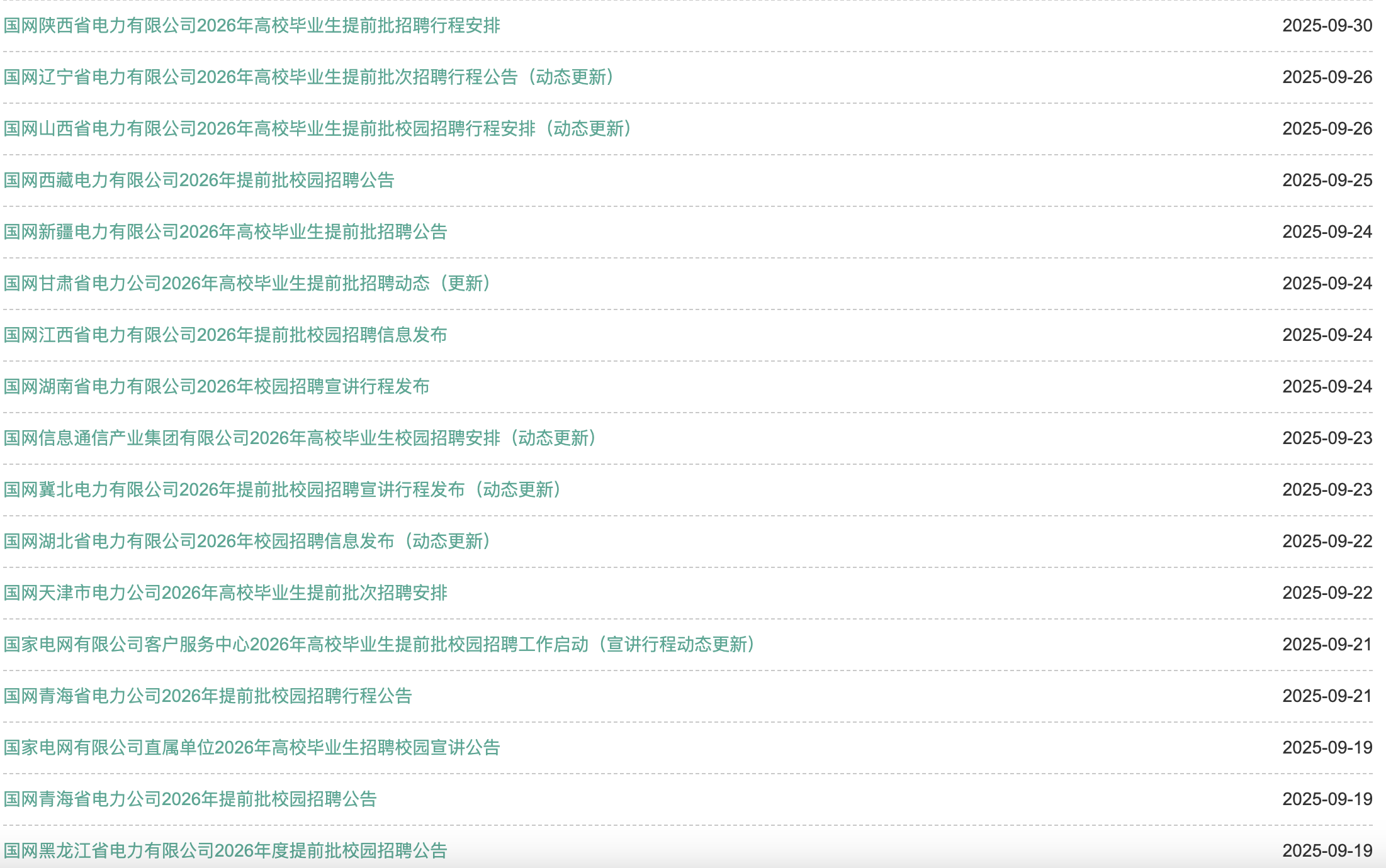 现在,国家电网供电公司,国家电网有限公司直属科研产业单位,南瑞集团有限公司(国网电力科学研究院),各地国家电网供电公司,2025/2026招聘正在如火如荼地进行中!电气工程、计算机、通信...多专业可投,覆盖南京、北京、深圳等全国20多个地区!