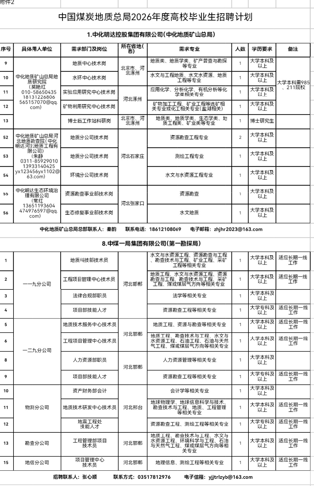 中国煤炭地质总局2026年度应届高校毕业生招聘468人公告(河北88人)