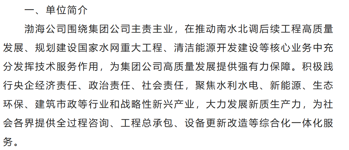 中国水利水电建设工程咨询渤海有限公司2025年秋季公开招聘公告
